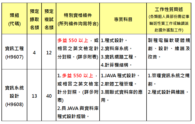 根據最新消息,中鋼從2017年到2022年,每年平均有540人退休,幾乎等於要招聘相同數量的新血。目前中鋼的政策主要推動新南向以及國際化,所以對於新進員工有一定程度的語言要求,從簡章可看出,不少類組要求報考門檻需多益550分,如:資訊工程師、市場開發、會計等師級人員,簡章細節如下: