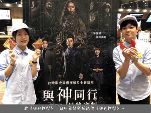 台灣影史最賣座韓片《與神同行:最終審判》即將上映最終完結篇!台中凱擘影城特別與大甲鎮瀾宮合作推出組合限量套餐,購買指定套餐影城還幫你捐款做公益。新光影城預購則送獨家福里安花神巧克力豆。